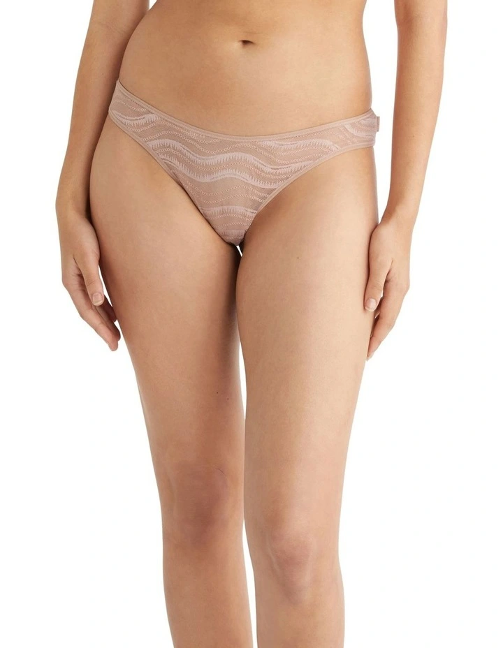 Elegant lace and smooth microfibre combine in this brief, cut with a classic bikini silhouette.