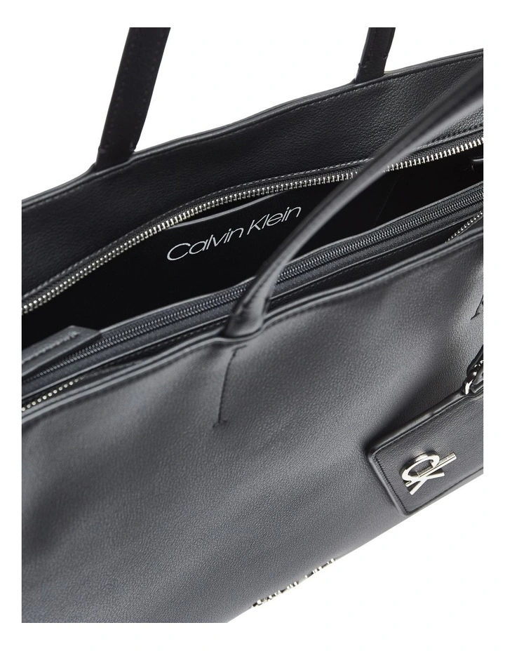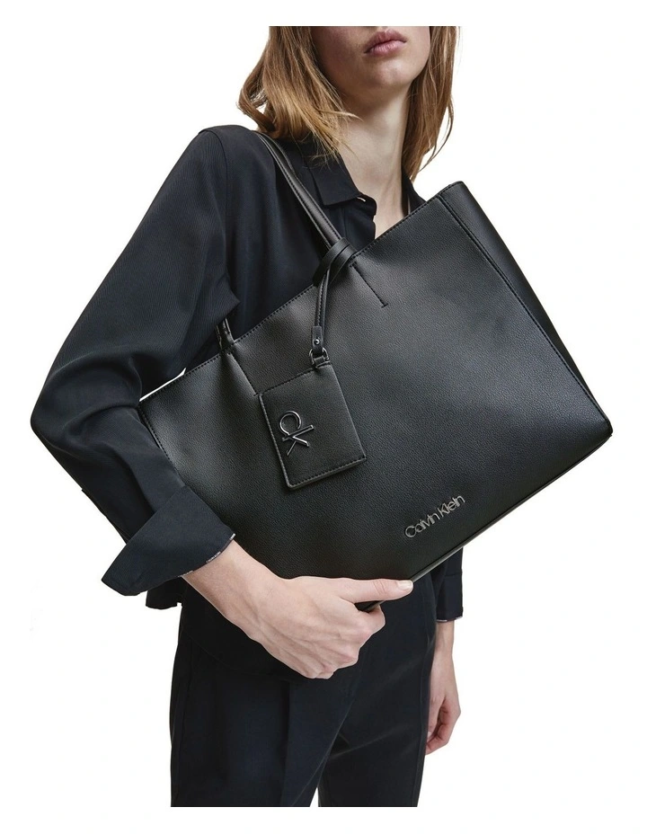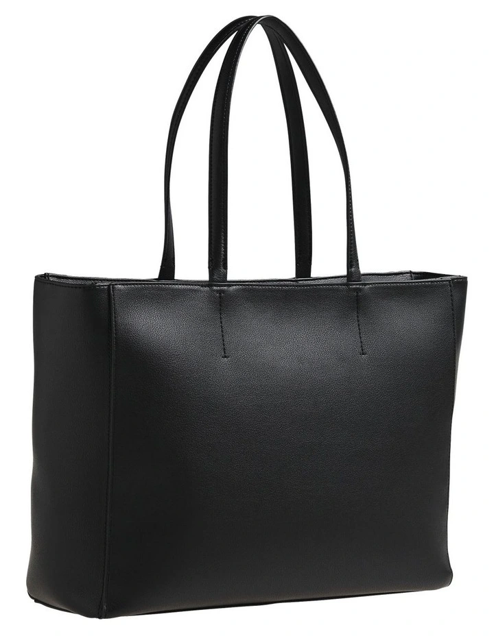 This faux leather tote bag is fitted with two carry handles, a zip fastening, interior laptop compartment and a detachable cardholder. A signature logo plaque features at the front.