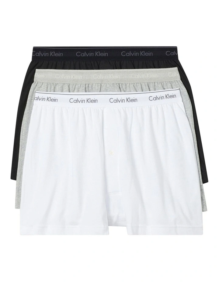 designed with soft pure cotton for a comfortable fit, this pack of three boxers are complete with a knitted fabrication, medium rise waist, button fly, classic design, and a signature elastic waistband.