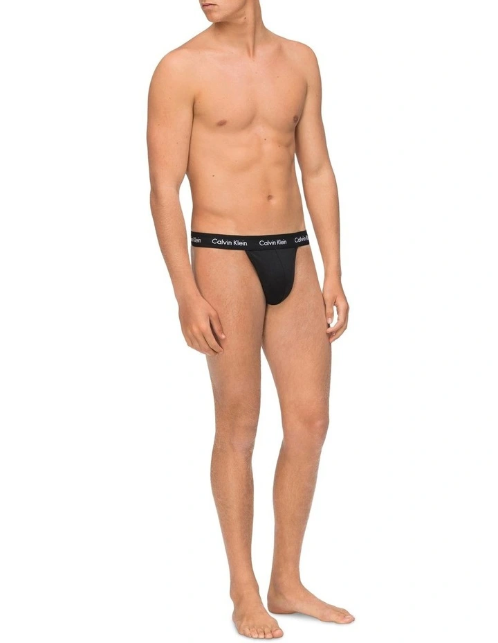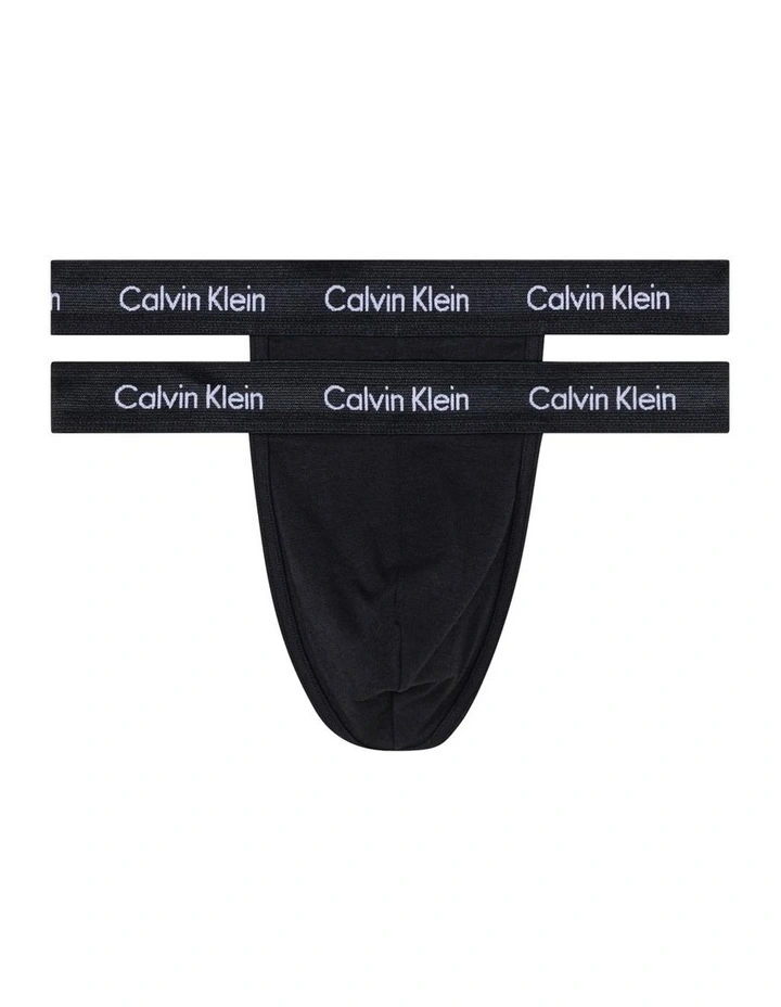 a set of two contemporary thongs, made from stretch cotton. featuring an elasticised branded waistband with seaming details and tonal top stitching.