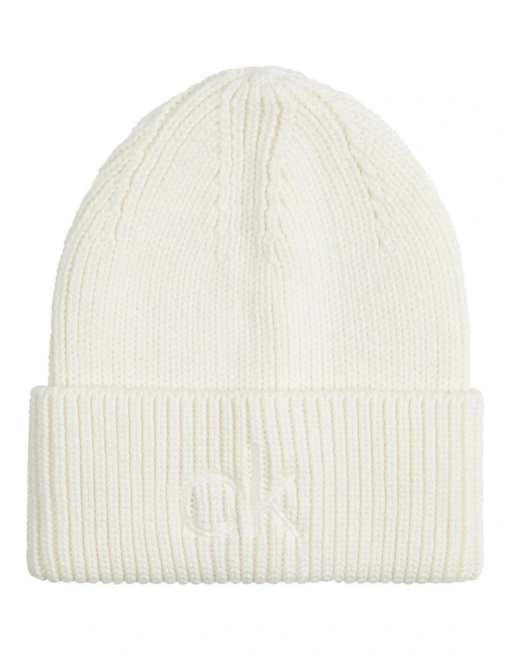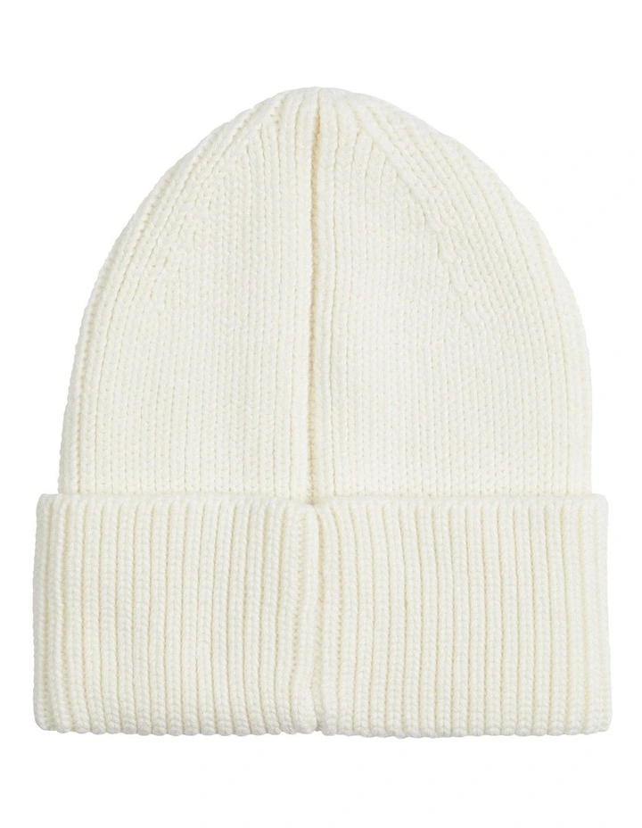 A beanie crafted from a cotton blend, completed with rib knit finish and bold monogram branding across the front.