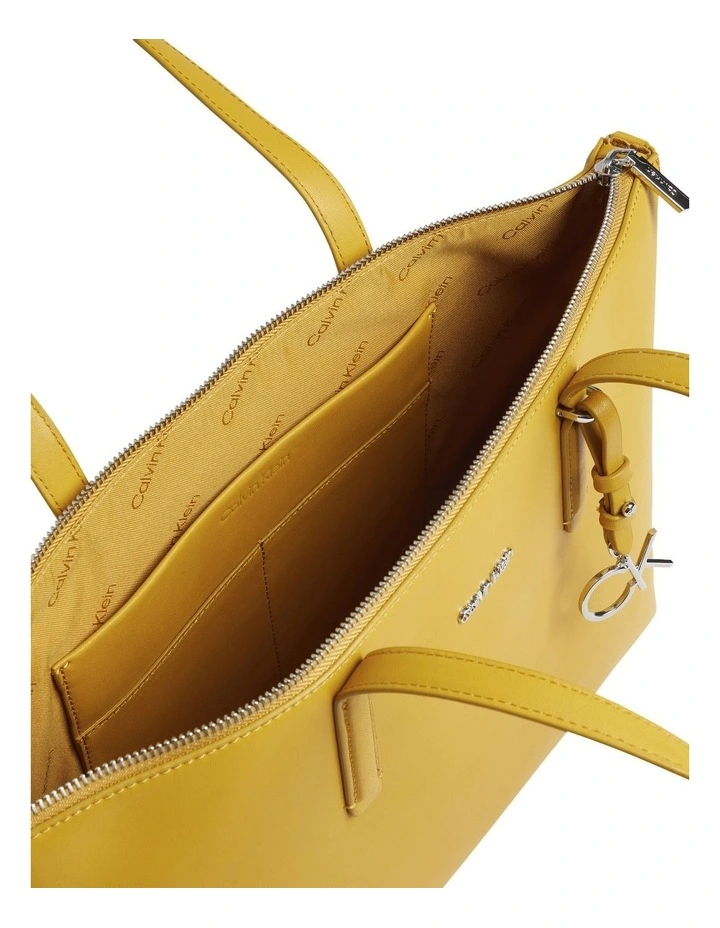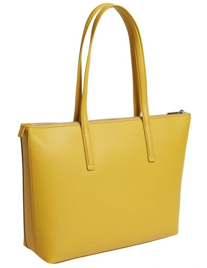 The tote bag exterior is crafted with 100% sustainably sourced materials, excluding trims.