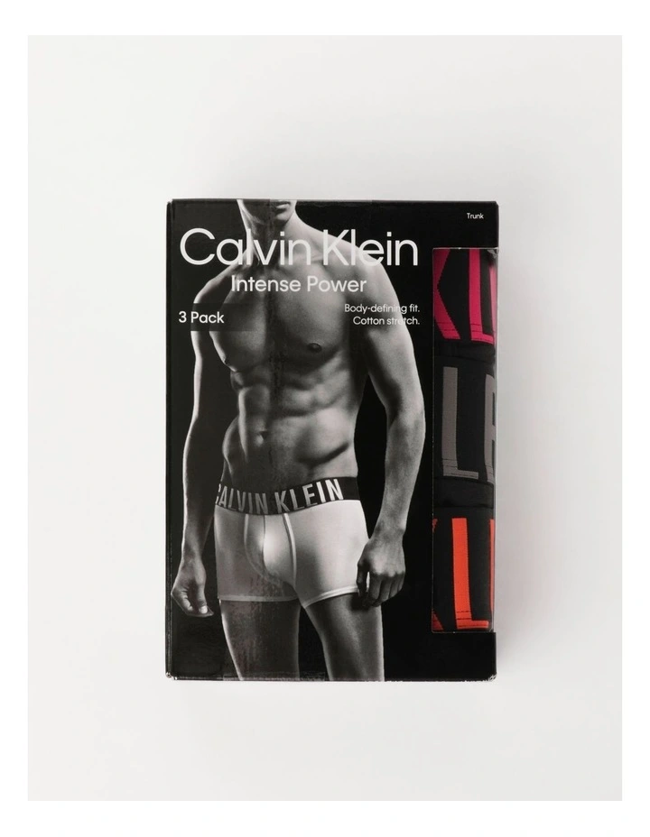 Minimalist silhouettes with a silky soft surface and powerful stretch are topped with the bold, quintessential waistband that shapes the INTENSE POWER range. This pack of three trunks are all complete with a blended cotton elastane fabrication, medium rise waist, and a signature elastic waistband.
