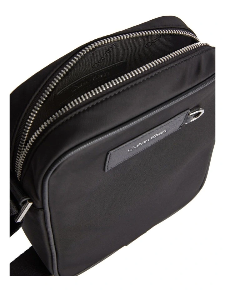 Bring a chic edge to your look with our iconic yet timeless accessories collection. The crossbody bag exterior is crafted with 60% sustainably sourced REPREVE fibres, made from recycled water bottles.