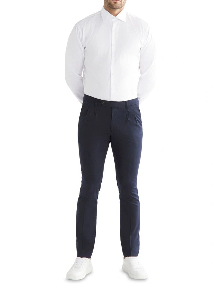 Calvin Klein is one of the leading fashion brands in the world with a modern, minimal and refined aesthetic. Quality fabrics and exceptional craftmanship reinforce Calvin Klein business wear as a leader in their category. The Slim 2 Pleat Trouser Navy is an essential for any mans wardrobe. Crafted in our Slim fit to bring definition and class to any outfit. The Chino pant can be rolled up for a casual setting or left down for a more defined look.Â
