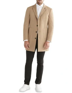 Calvin Klein Slim Twill Knit Coat In Brown