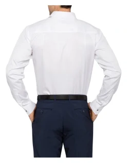 Calvin Klein Diamond Self Dobby Organic Cotton Long Sleeve Business Shirt White
