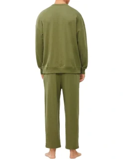 Calvin Klein Embossed Icon Lounge Long Sleeve Sweat Top In Olive