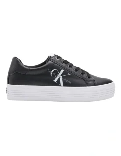 Calvin Klein Leather Platform Lace Up Sneaker In Black