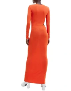 Calvin Klein Lyocell Jersey Cut Out Dress In Orange