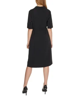 Calvin Klein Travel Crepe V Neck Midi Dress In Black